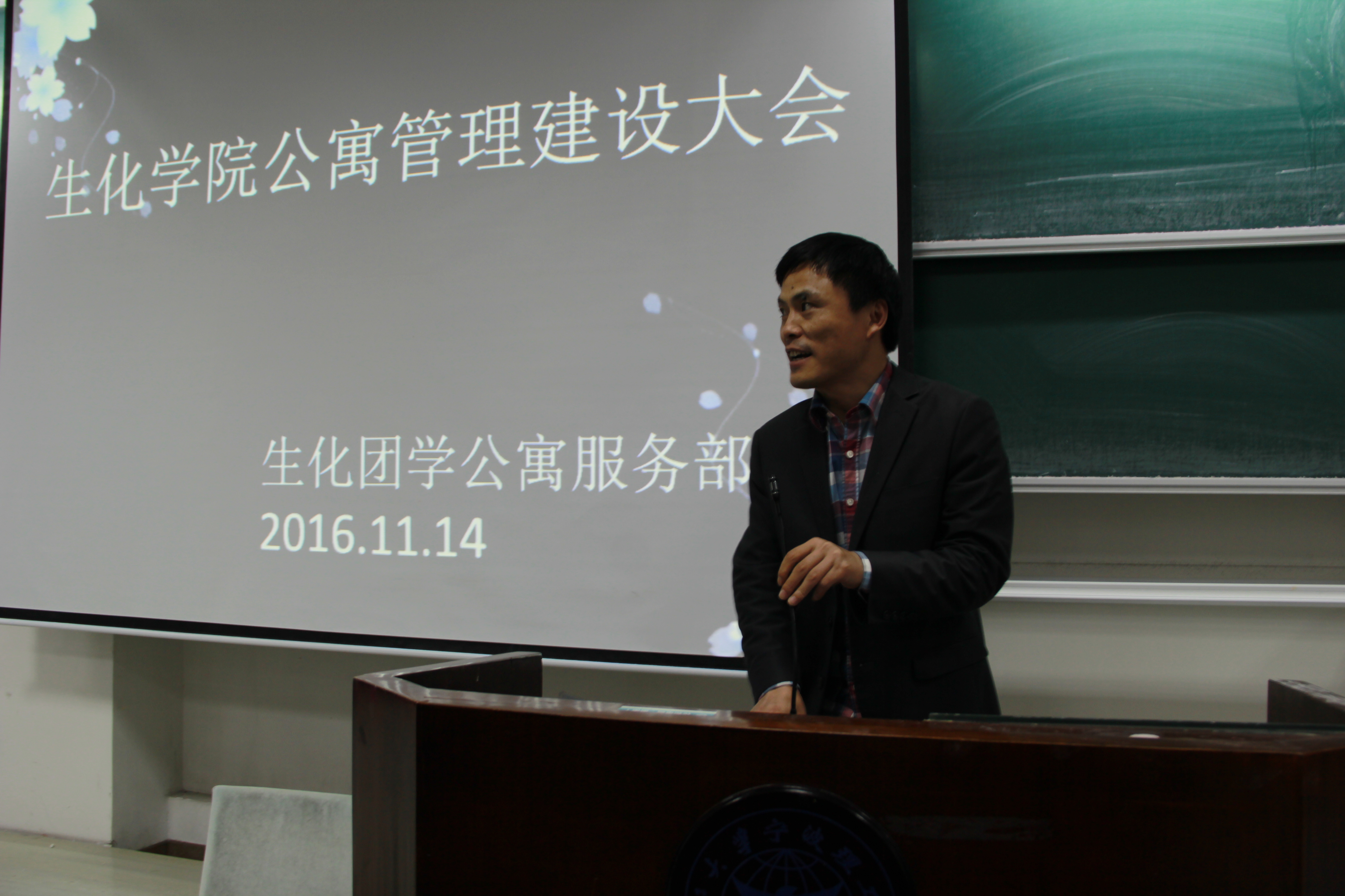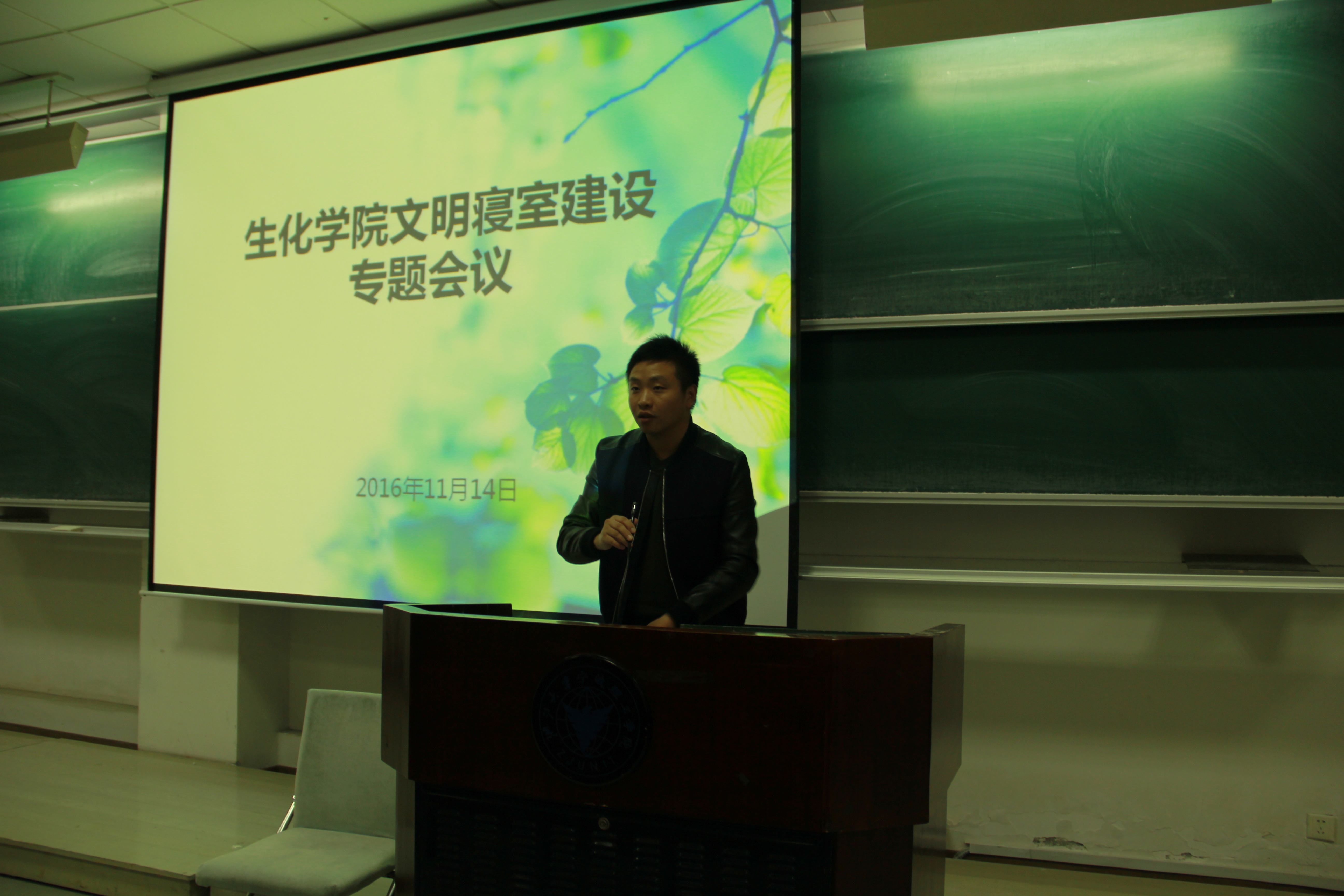 最后,楼文军老师从老员工成长成才角度为同学们阐述了寝室文明、安全、卫生的重要意义。他指出文明寝室创建工作是直接关系员工身心健康,直接体现员工精神面貌和个人素质,必须常抓不懈,建立长效机制;他强调全体党员、员工骨干,全体生化人要进一步提高认识,统一思想,把文明寝室建设做为当前一项重要工作切实抓紧、抓深、抓实;文明寝室创建是一项系统工程,他衷心希望每一位同学都能自觉维护寝室卫生环境,营造积极向上的寝室文化,共同推进文明寝室创建工作。