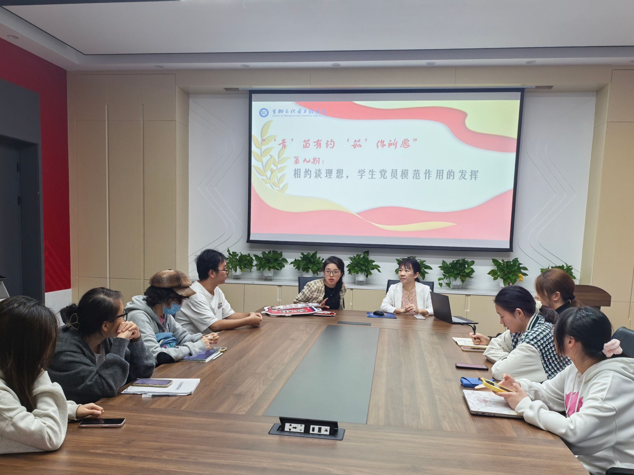 活动开始,闫雪茹对前期的预备党员教育培养工作进行了回顾总结,同学们分享自己进入党组织后在思想觉悟、党内工作、员工事务、学习生活中获得的成长以及遇到的困扰。员工第二党支部预备党员汪永昌表示:“从单纯的员工干部,到现在变成员工党员,我成长了很多,在进入党组织后,我更加认识到党员这个身份的意义和责任。在这样的身份下,学习和工作中我更加能以严格的标准要求自己,时刻谨记自己是一名党员。”大家畅所欲言,交流得十分热烈。