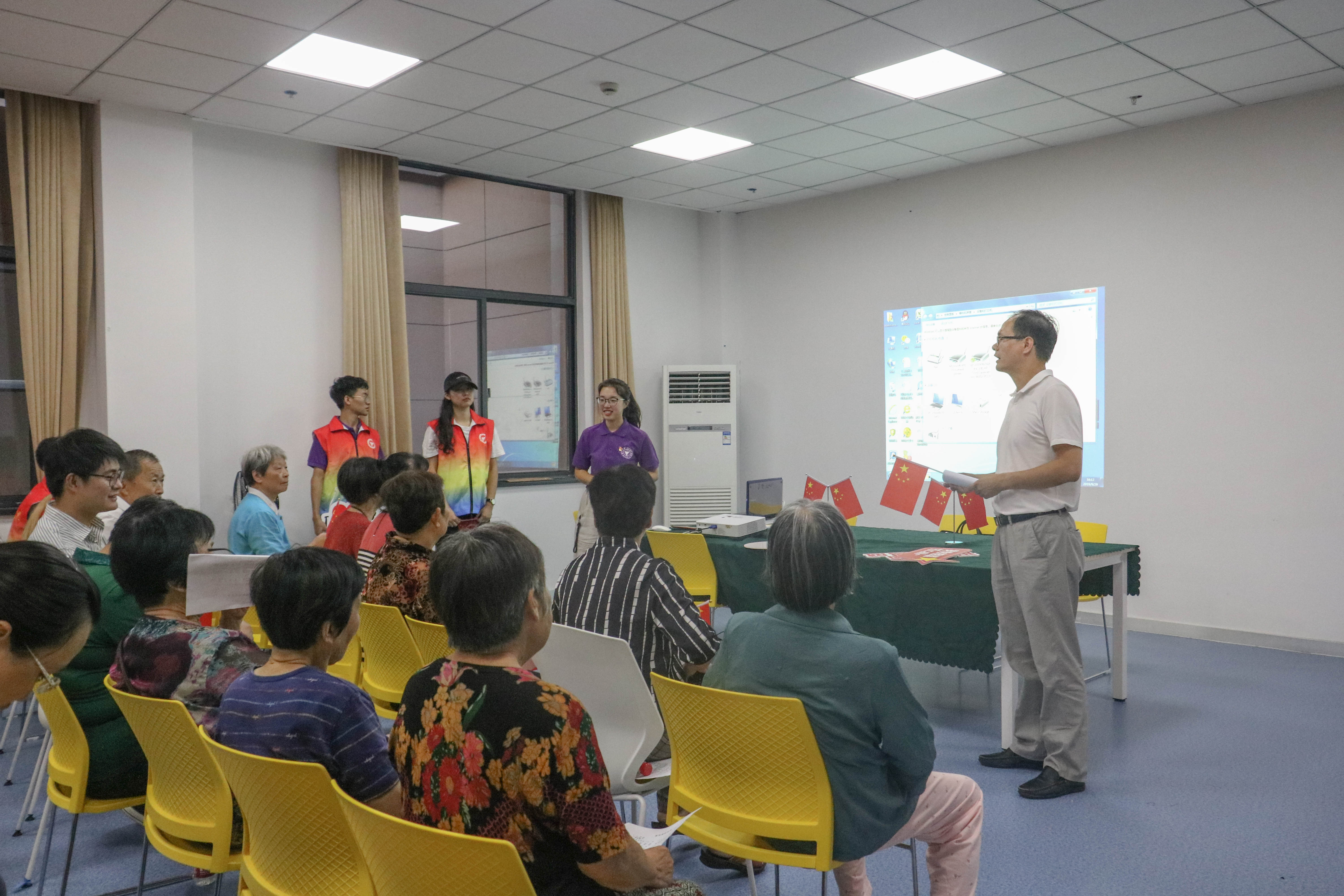 同学们以暑期贵州之行的见闻为起点,旁征博引,多维度、多层次地向大家详细介绍了中国共产党在长征途中的艰难险阻与遵义会议的历史地位,一起感悟中国共产党人艰苦卓绝的斗争精神和红军烈士英勇奋战的革命精神。同时以浙大师生在国难当头依旧坚持“教育救国,科技兴邦”的西迁历史为主线,与社区党员分享了浙江大学流亡办学的经历,用生动的事例为大家诠释了困境中坚持办学,在办学中不忘抗日的浙大精神。