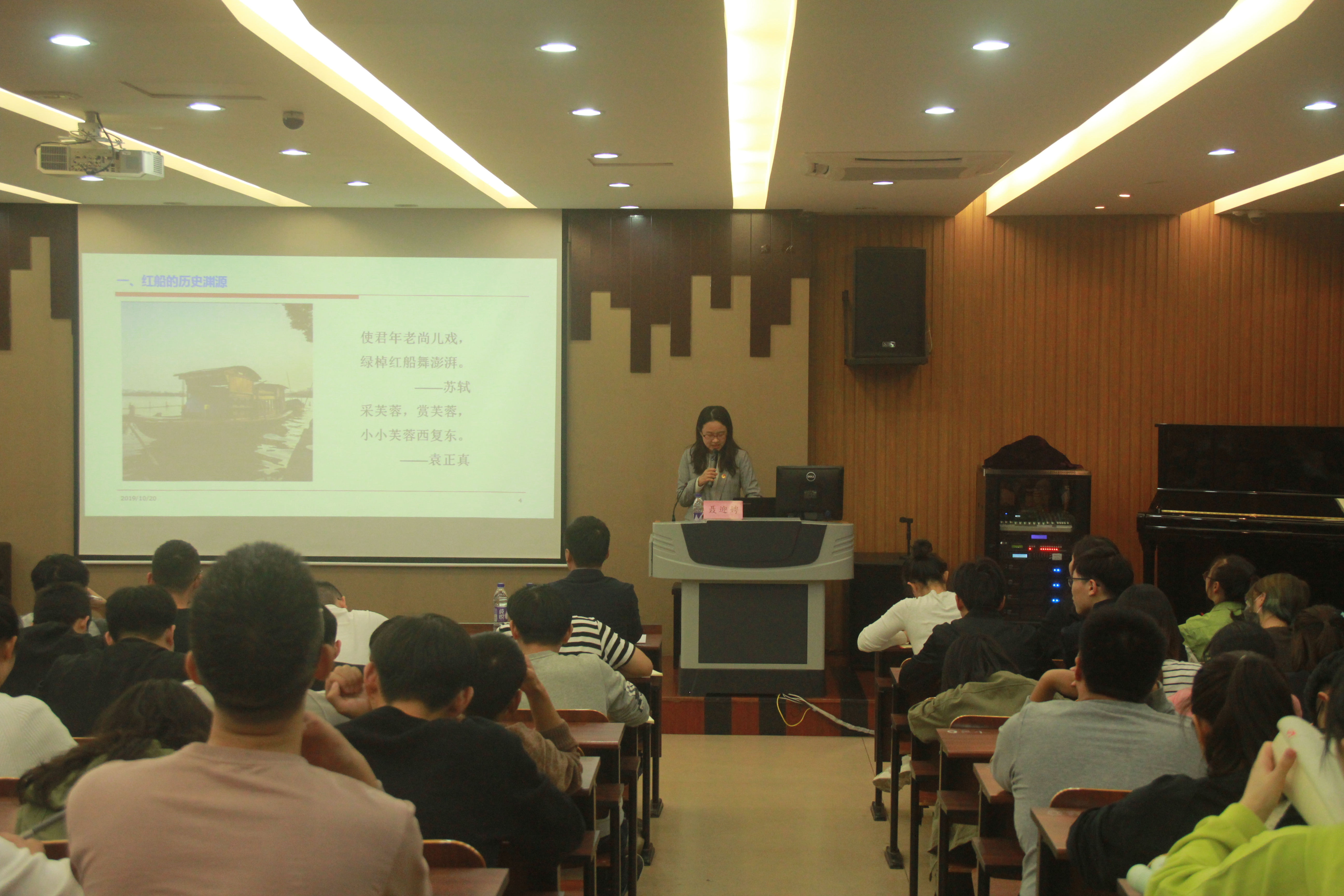聂迎娉老师从红船的历史渊源、红船精神的内涵与意蕴以及弘扬红船精神,争做新时代青年三个方面为大家进行了深刻的剖析。她指出这条小小的红船上诞生了一个伟大的党,它承载着中国共产党的初心与使命,贯穿了党实现初心使命的全历程,也指引着中华民族的伟大复兴。红船精神是开天辟地、敢为人先的首创精神;是坚定理想、百折不挠的奋斗精神;也是立党为公、忠诚为民的奉献精神。作为新时代青年,大家应该怀揣“青春建功新时代”的信念,大力弘扬红船精神,从初心使命中不断汲取力量,坚定“强国一代有我在”的责任和涵养“功成必定有我”的担当。