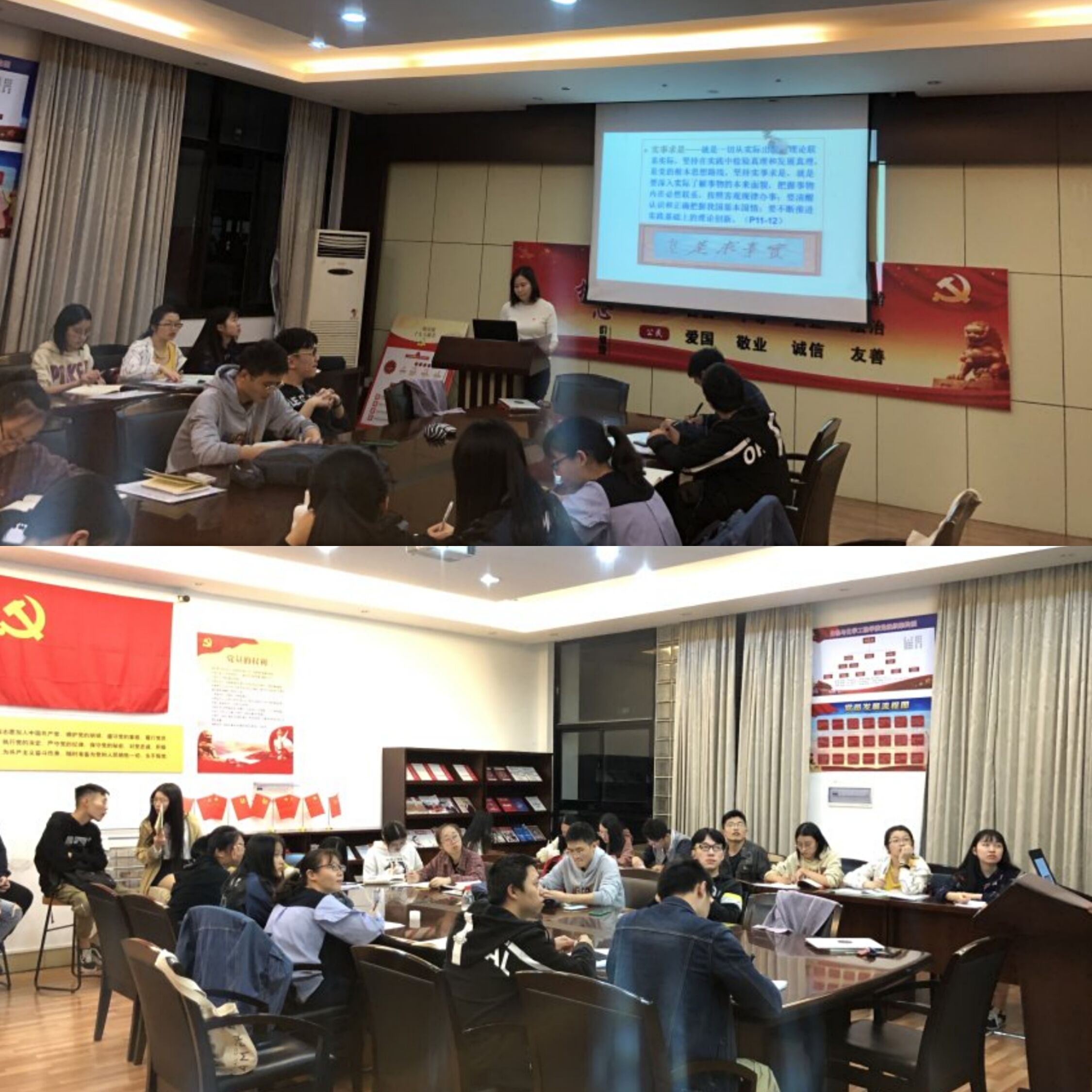 本次张硕老师微型党课授课主题为“毛泽东思想活的灵魂和时代精神”。一直以来,实事求是都是我党大力弘扬的工作作风,同时也是许多高校重要的思想,例如中共中央党校和中国人民大学就把事实求是作为自己的“校训”,毛主席曾学习过的岳麓书院讲堂前也写着“事实求是”,浙江大公司训也是“求是创新”。事实求是与群众路线,独立自主一起作为毛泽东思想活的灵魂,在当代其更有有重要的价值,特殊的意义。“不忘初心,牢记使命”,这八个自与实事求是紧密相连,共产党人不能忘记自己的出发点和落脚点,也不能忘记自己的工作准则和行为准则,要坚决把事实求是的工作作风融入到学习生活工作中去,一定要牢记,实践才是检验真理的唯一标准。