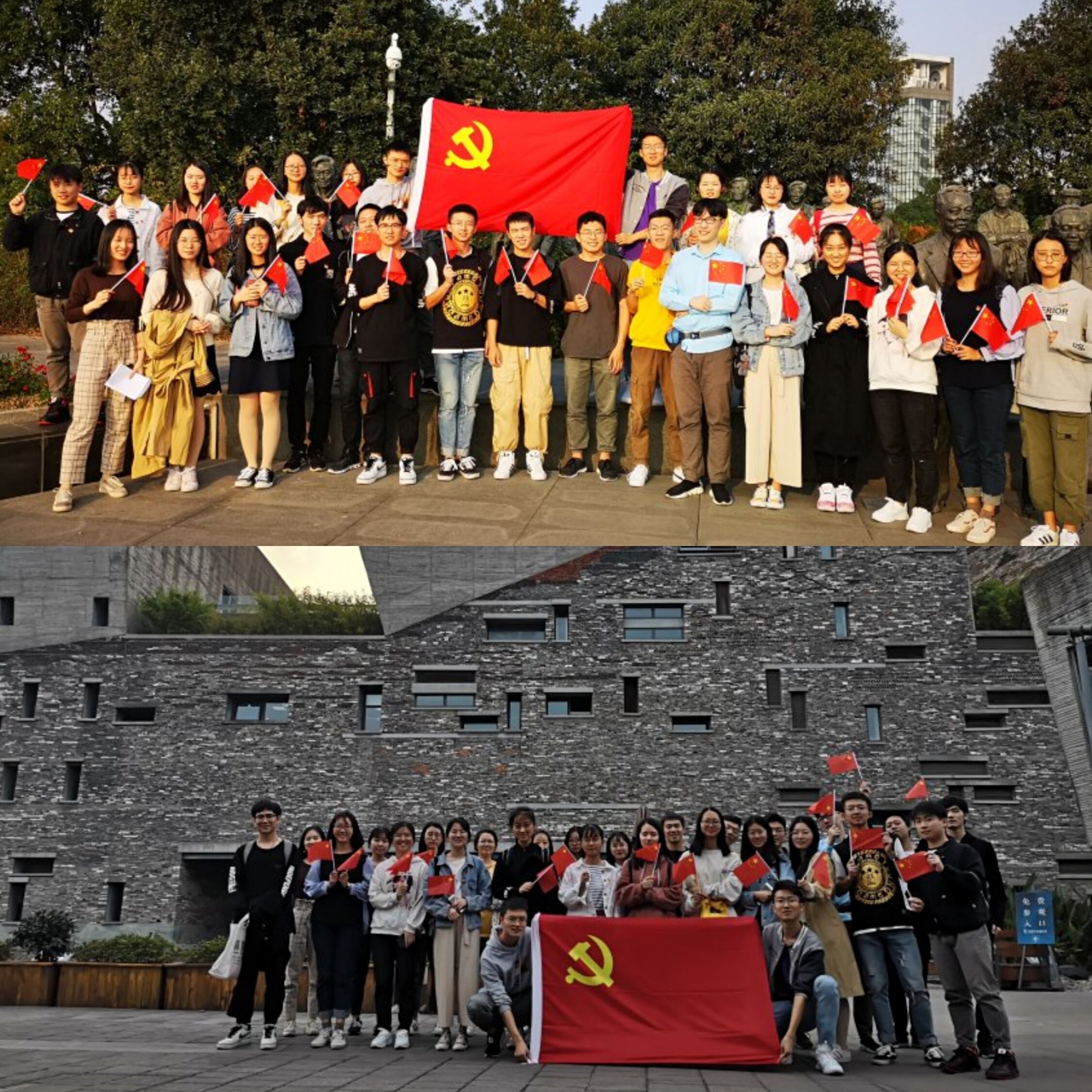 支部党员在宁波院士公园参观各个宁波籍院士。活动结束后,同学们在院士雕塑前一起合影留念。