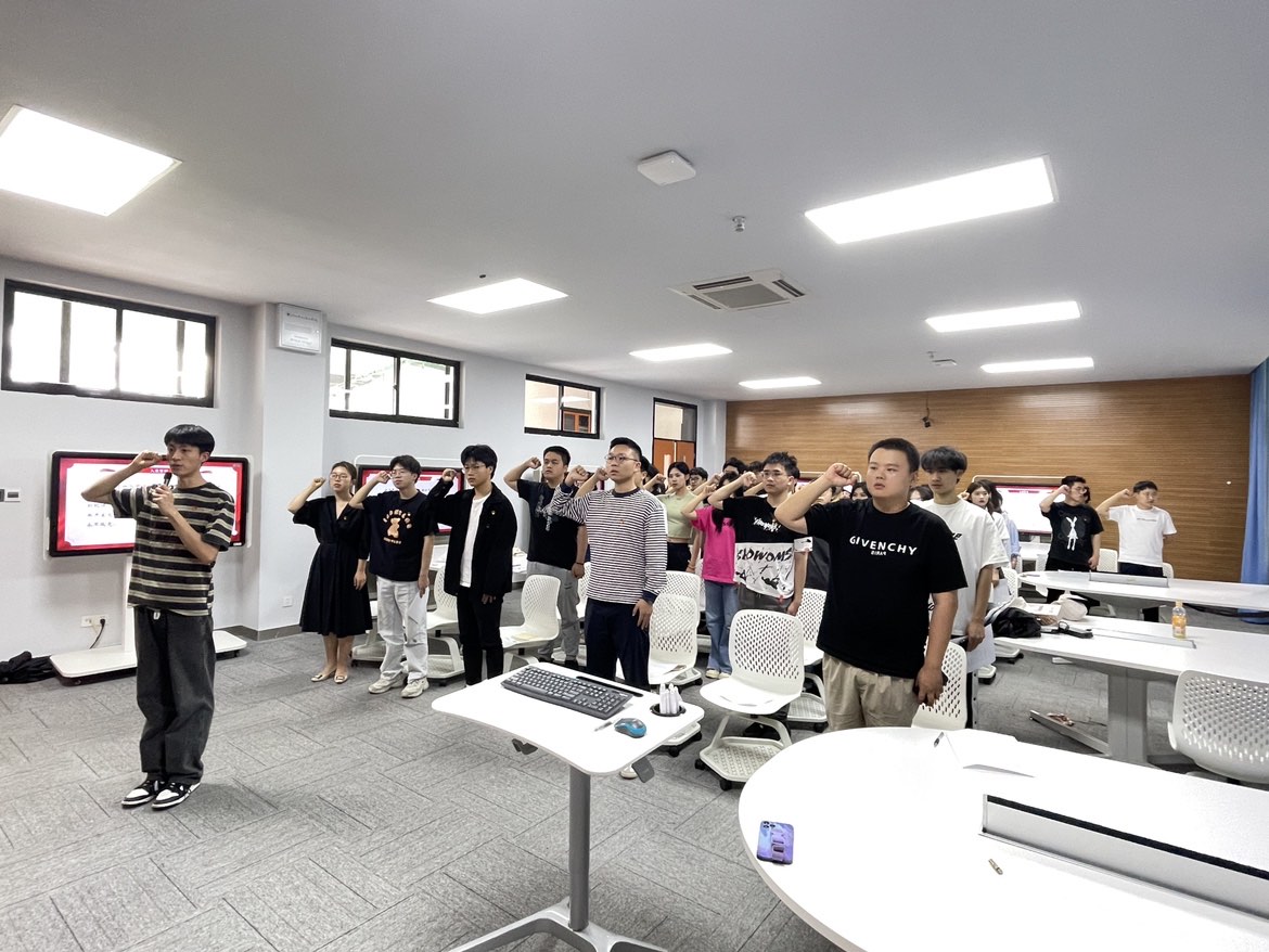 在优秀毕业生党员朱坚楠的带领下,全体毕业生党员重温入党誓词,以铮铮誓言表达了坚定听党话、跟党走的决心。
