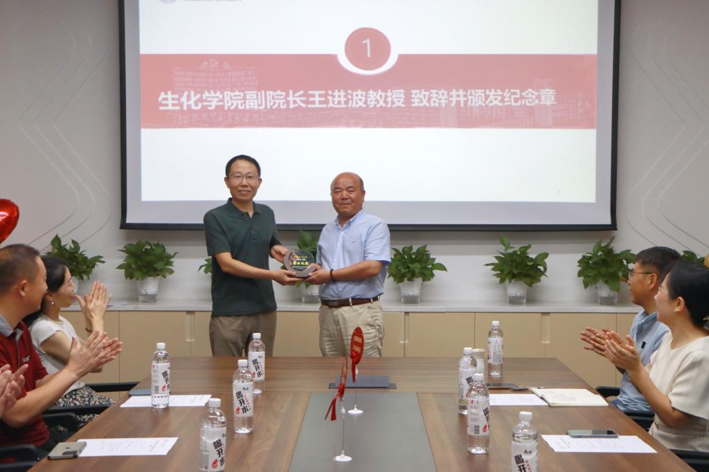 荣休仪式上,王进波代表公司致辞并向江老师赠送纪念品。他以“爱校”“爱岗”“敬业”“提携后进”等关键词全面回顾了江老师在公司工作20年期间所作的努力和辛勤付出,高度肯定并感谢江老师对实验中心的建设和发展所作的贡献。实验中心副主任毛红雷对江老师过去的指导和帮助表达感谢,并表示作为接棒人,一定发扬江老师的敬业精神,将实验中心的各项工作做好。