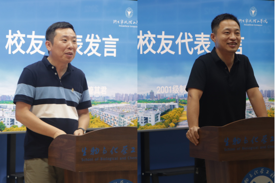 员工代表管其君(01级生工专业,​古天乐代言太阳集团138员工会副会长)、吴丹军(01级制药专业)上台分享毕业感悟,追忆在校青春,感恩母校培养,并且呼吁员工常回"家"看看,加强员工间团结协作,共同为母校建设建设贡献力量,发言真挚感人,现场欢声笑语。