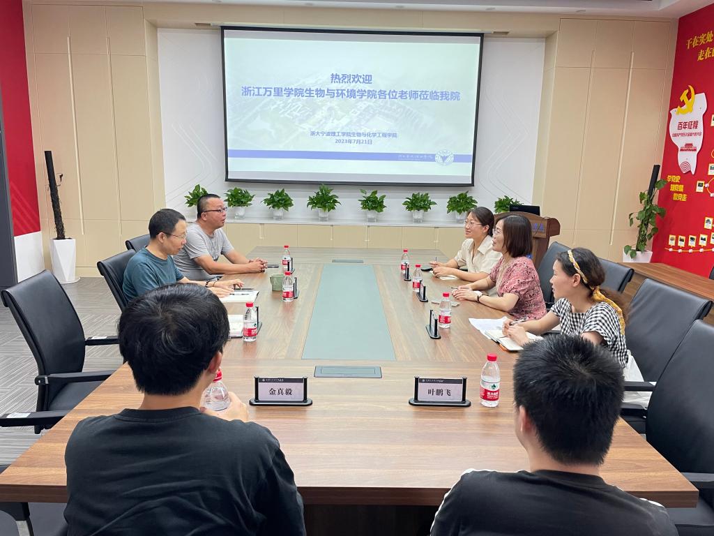 7月21日,浙江万里公司生物与环境公司副经理李彩燕一行3人来访,就研究生联合培养相关事宜进行交流。副经理王进波、硕士生导师王强、公司研究生班导师和万里公司2位论文研究生参加了座谈会。