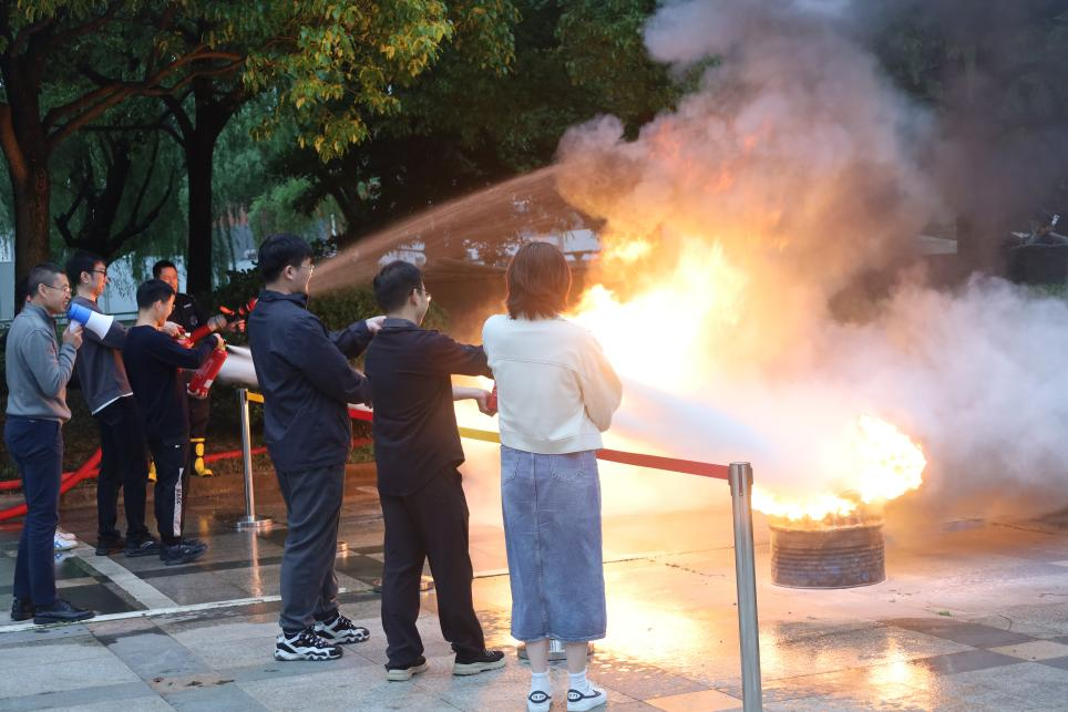 完成疏散任务后,公司安全保卫处燕永波老师现场讲解了消防安全的重要性和发生各类火险情况后的应对方式,演示了干粉灭火器的使用方式。随后,在燕老师及校卫队员的指导下,师生们轮流操作灭火器进行现场灭火。