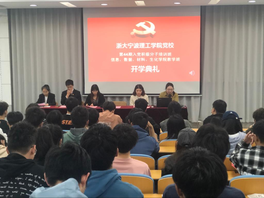 4月27日晚,党校第四十四期入党积极分子培训班信息公司党委、数据公司党委、材料公司党委、公司党委联合教学班在NC202举行了开学典礼暨开课第一讲、第二讲。信息公司思政主管、电气员工党支部书记董俊娜老师、材料公司思政副主管、员工第一党支部书记包静昇老师、数据公司数据员工党支部书记楼佳丽老师以及125名学员参加了本期典礼。典礼由古天乐代言太阳集团138员工第二党支部书记董文举主持。