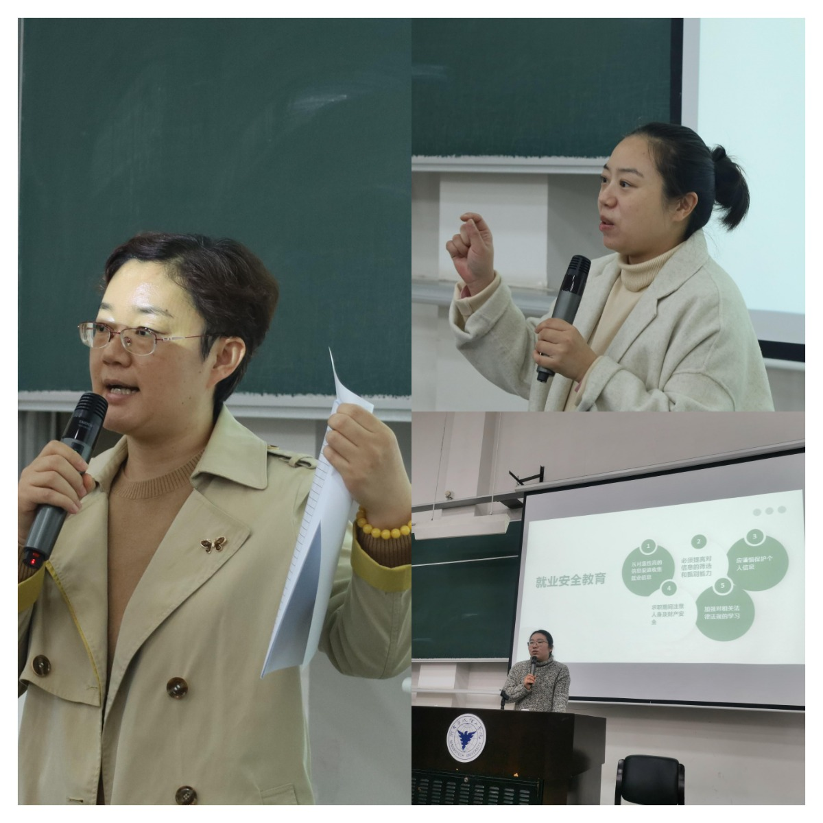 学工办的老师们给毕业生详细介绍了二课堂学分、实习请假、就业协议、档案派送等四个方面内容,解除了毕业生们心中的疑惑。董老师借此机会,再次强调安全教育,让同学们擦亮双眼,谨防电信诈骗。