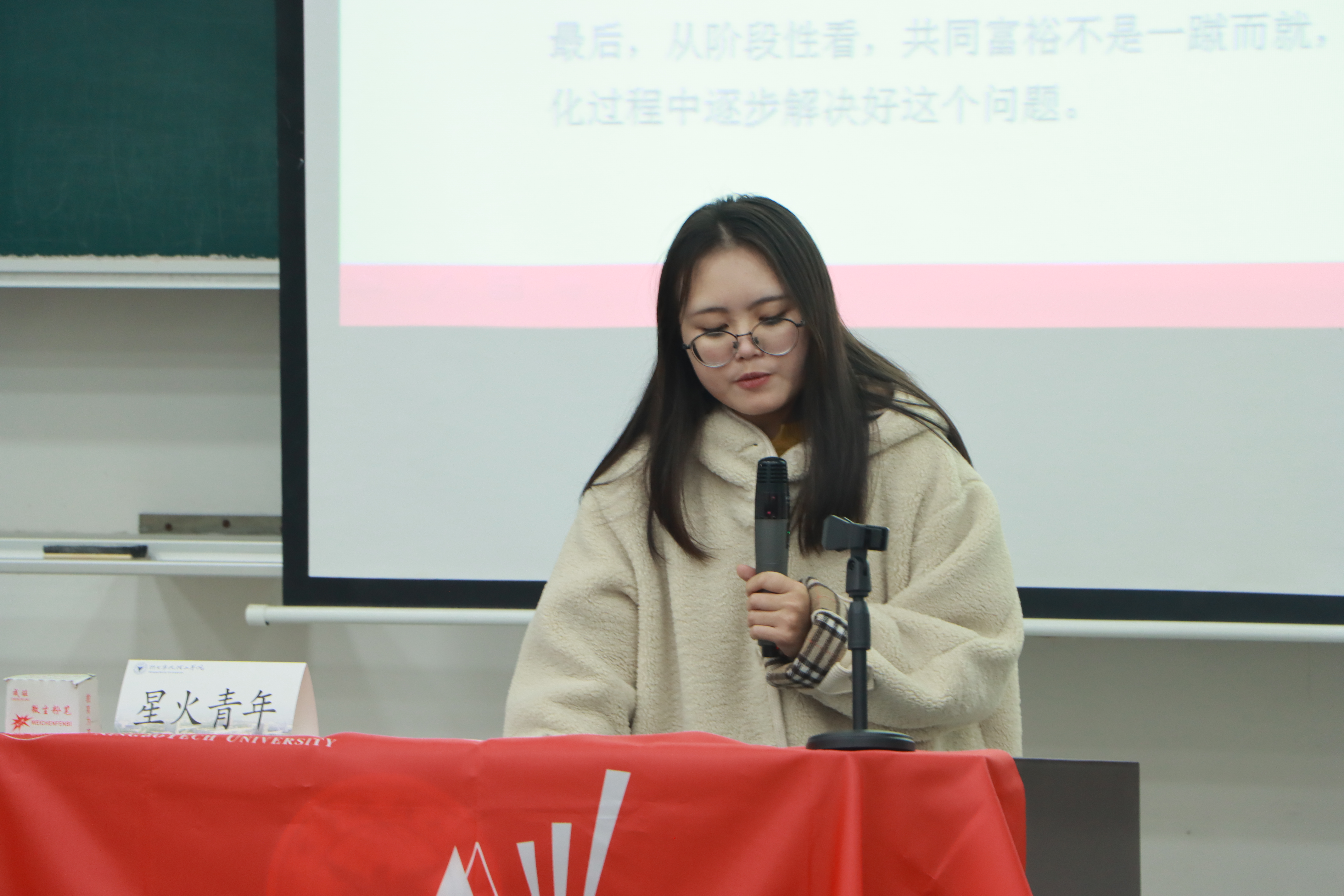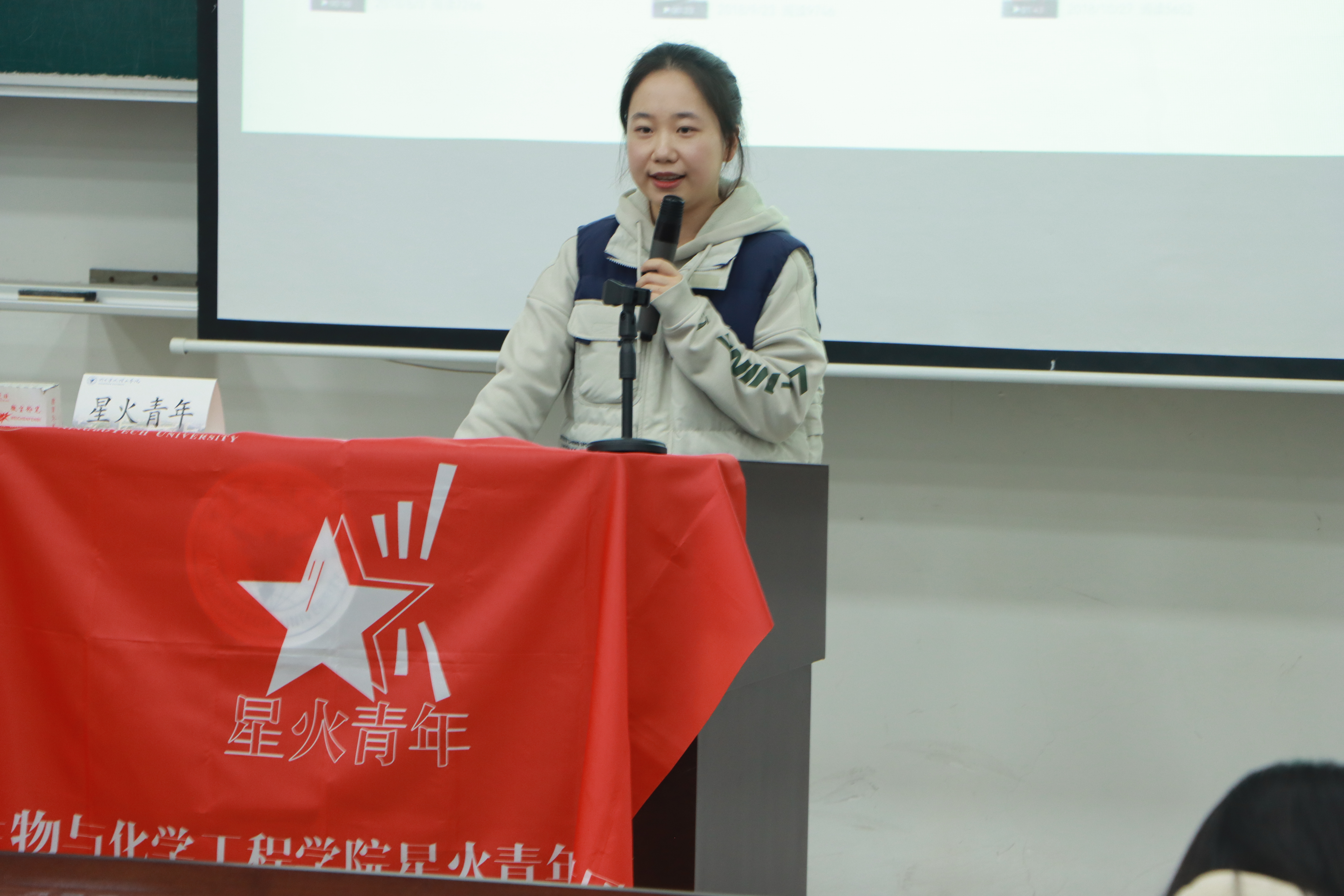 此次,星火宣讲团的成员们也开展了宣讲。陈雯和陈怡两位同学分别以“和平方舟”精神以及共同富裕为主题,结合自身经历,讲述当下时代楷模和时政热点。表明当代老员工应当努力学习,提高自身素质,在“重要窗口”写下青春的绚丽光彩。