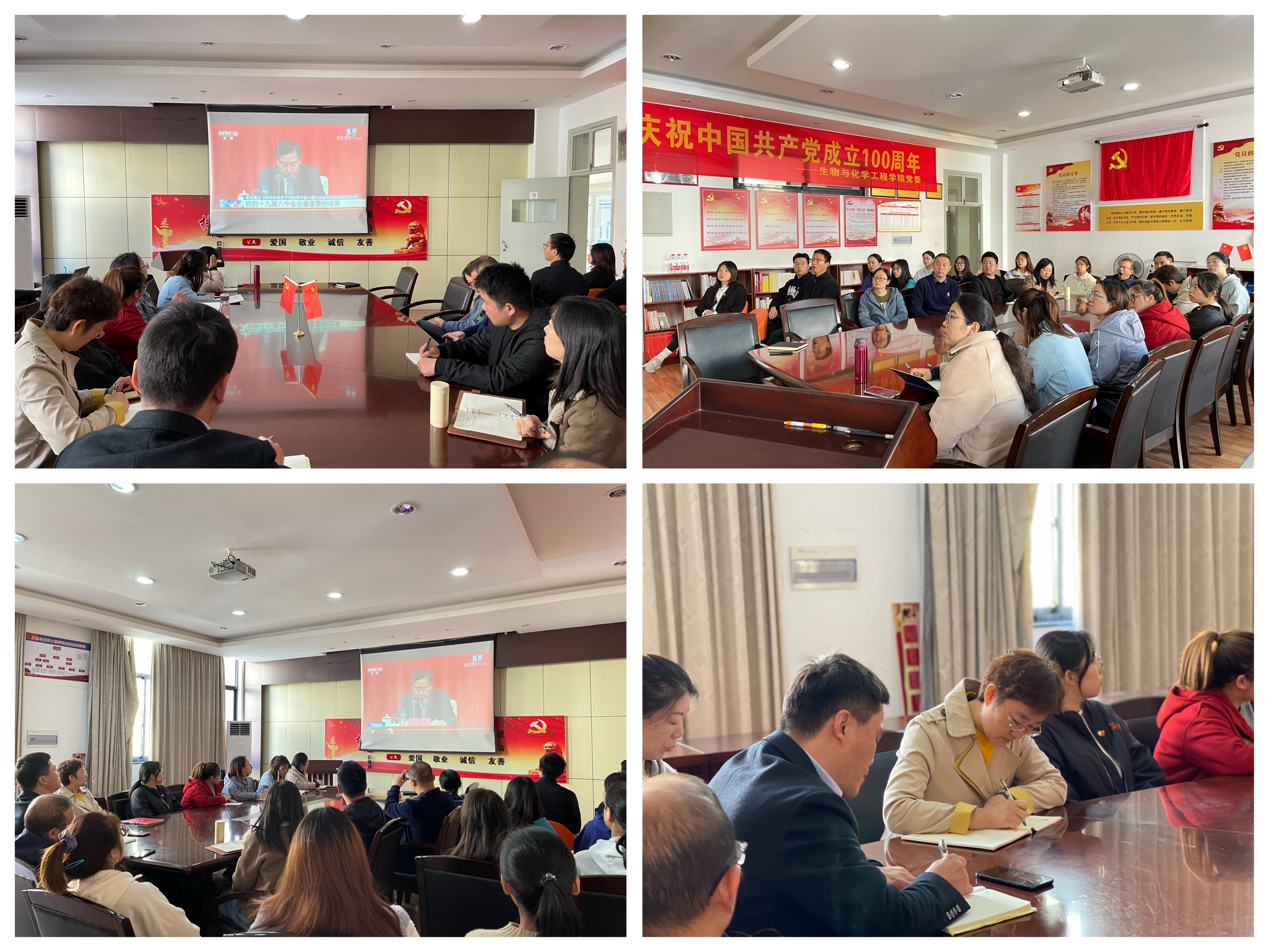 11月12日上午10时,中共中央举行十九届六中全会新闻发布会,公司党委组织师生党员通过电视、网络、手机客户端等多渠道共同观看,全院上下掀起了学习全会精神的热潮。