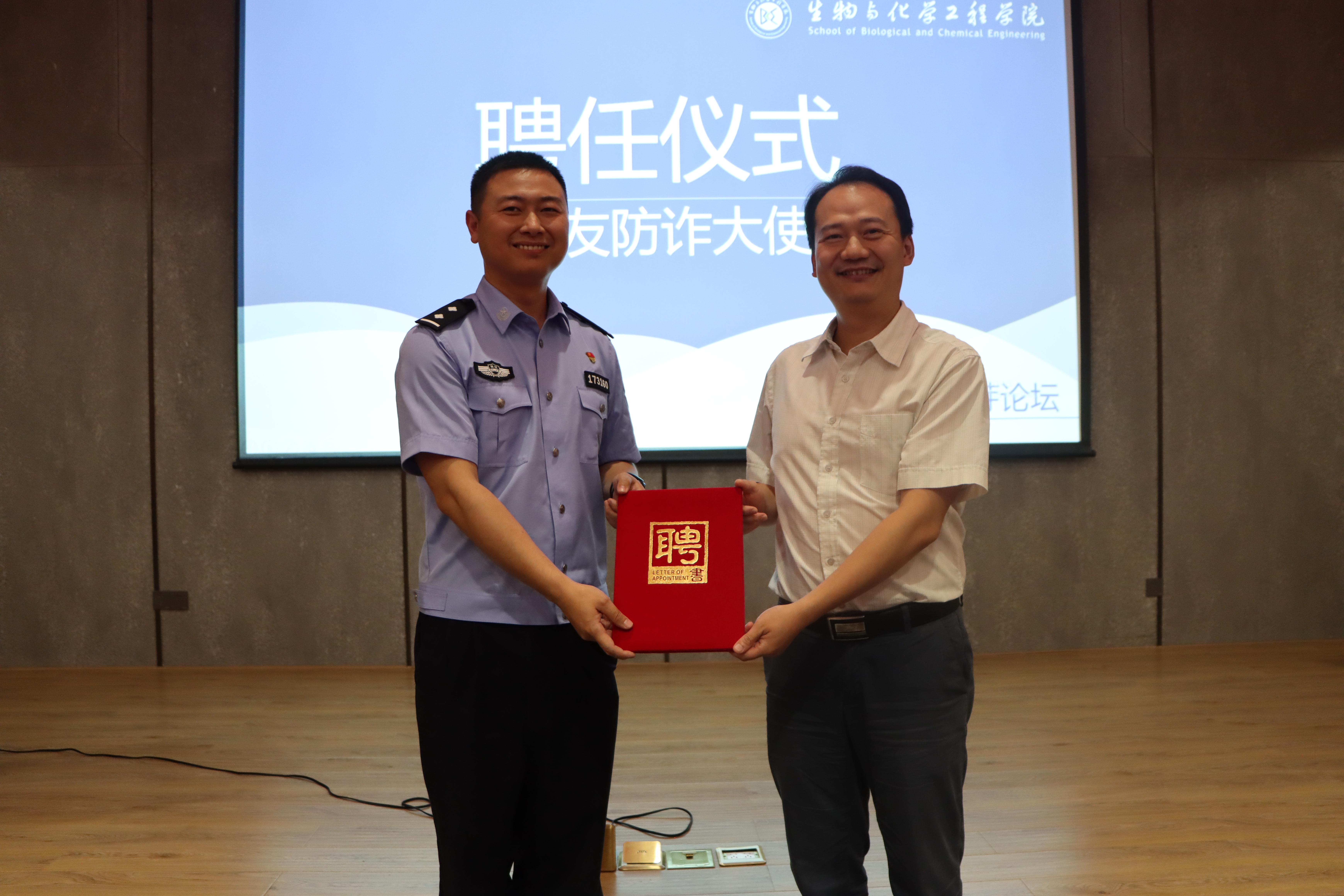 为进一步扩大公司防诈队伍,增强防诈工作实效,公司以班级为单位,设置“班级安全员”负责本班的防诈教育与宣传工作,赵涵与徐世勇为各班“班级安全员”颁发聘书。