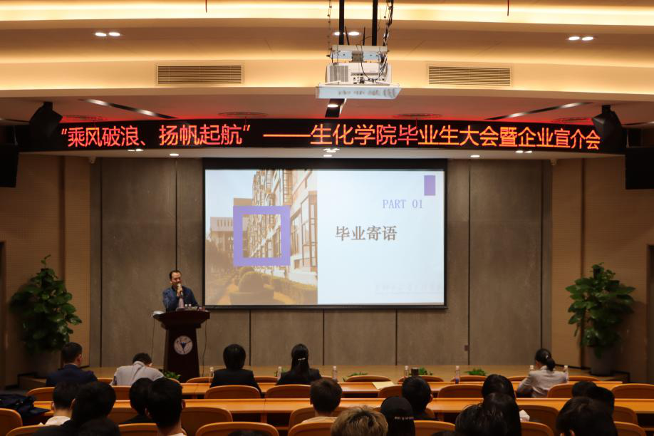 随后,浙江朗华制药有限公司医药研究所虞文亚女士、宁波金发新材有限公司王战芳先生、浙江我武生物科技股份有限公司罗兴安先生分别登台介绍了各自企业情况以及招聘人员的相关要求,鼓励毕业生们不忘初心,勇攀高峰!