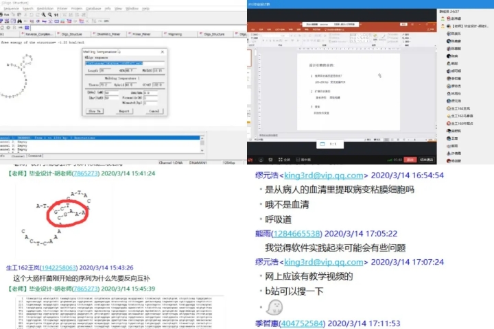 复试毕设两手抓,鱼和熊掌可兼得。生物工程专业胡升和赵伟睿两位教师为了帮助毕业生更好的完成毕业设计,针对课题组考研员工较多要准备考研复试的情况,将毕业设计的实验与复试可能要面临的问题有机结合。就基因克隆与表达、蛋白质纯化与性质坚定、微生物发酵等常规实验的原理、流程和注意事项进行了线上的模拟展示。同时,两位老师还上传了往届员工联系导师的邮件模板和个人简历模板,指导同学撰写个人简历和研究生导师联系邮件,并且对同学们的简历和联系邮件进行修改和润色。