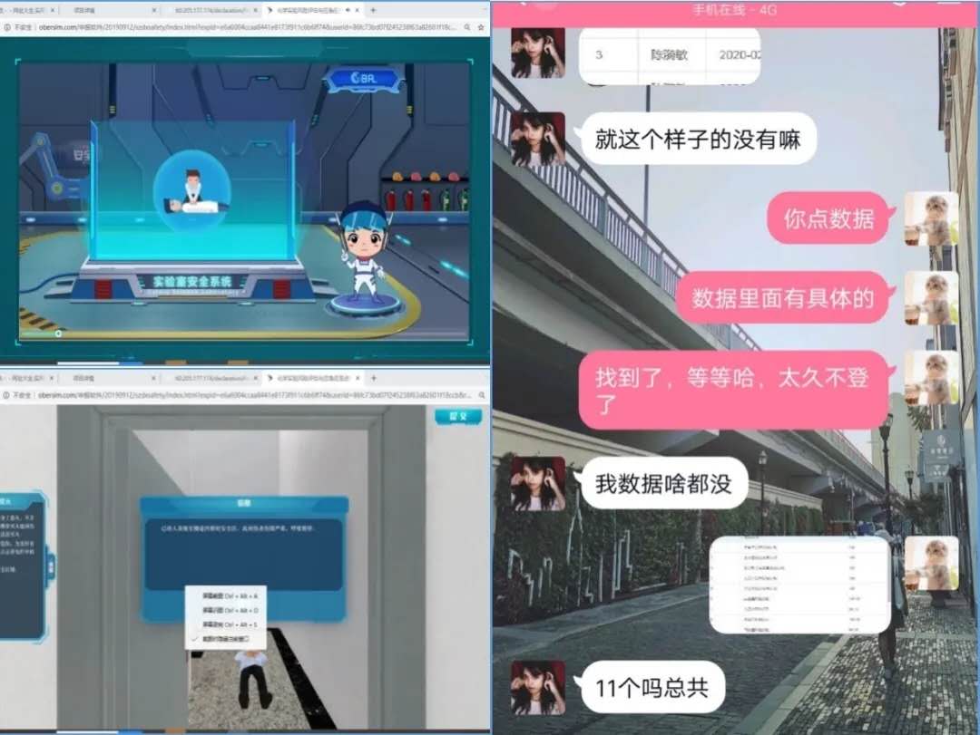 基础化学实验课程组的老师通过精选国家虚拟仿真实验平台的4个项目进行虚拟仿真实验,结合QQ、钉钉等在线直播和线下答疑混合式教学。期间老师也会以员工身份登录学习,以解决员工可能遇到的难点,确保正常教学开课。