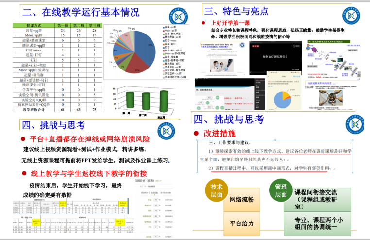 本次线上教学视频分享会为全院老师分享总结了线上实战教学经验,及时提供了相互学习的平台和方法,尤其是在网络拥堵的情况下如何及时灵活转换教学方式方法,为疫情期间的线上教学以及后续线上线下一流课程建设奠定了良好的基础。