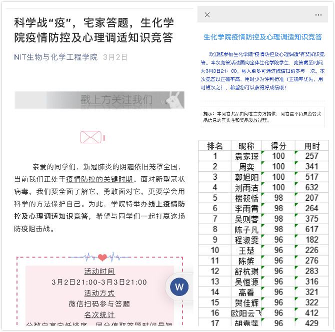 本次疫情防控工作中,生化公司广泛利用互联网平台优势,充分发挥党组织的“头雁”效应,以最大努力、最严措施、最快速度,全面落实防控举措,坚决打赢疫情防控狙击战,以实际行动为师生身体健康和生命安全保驾护航。