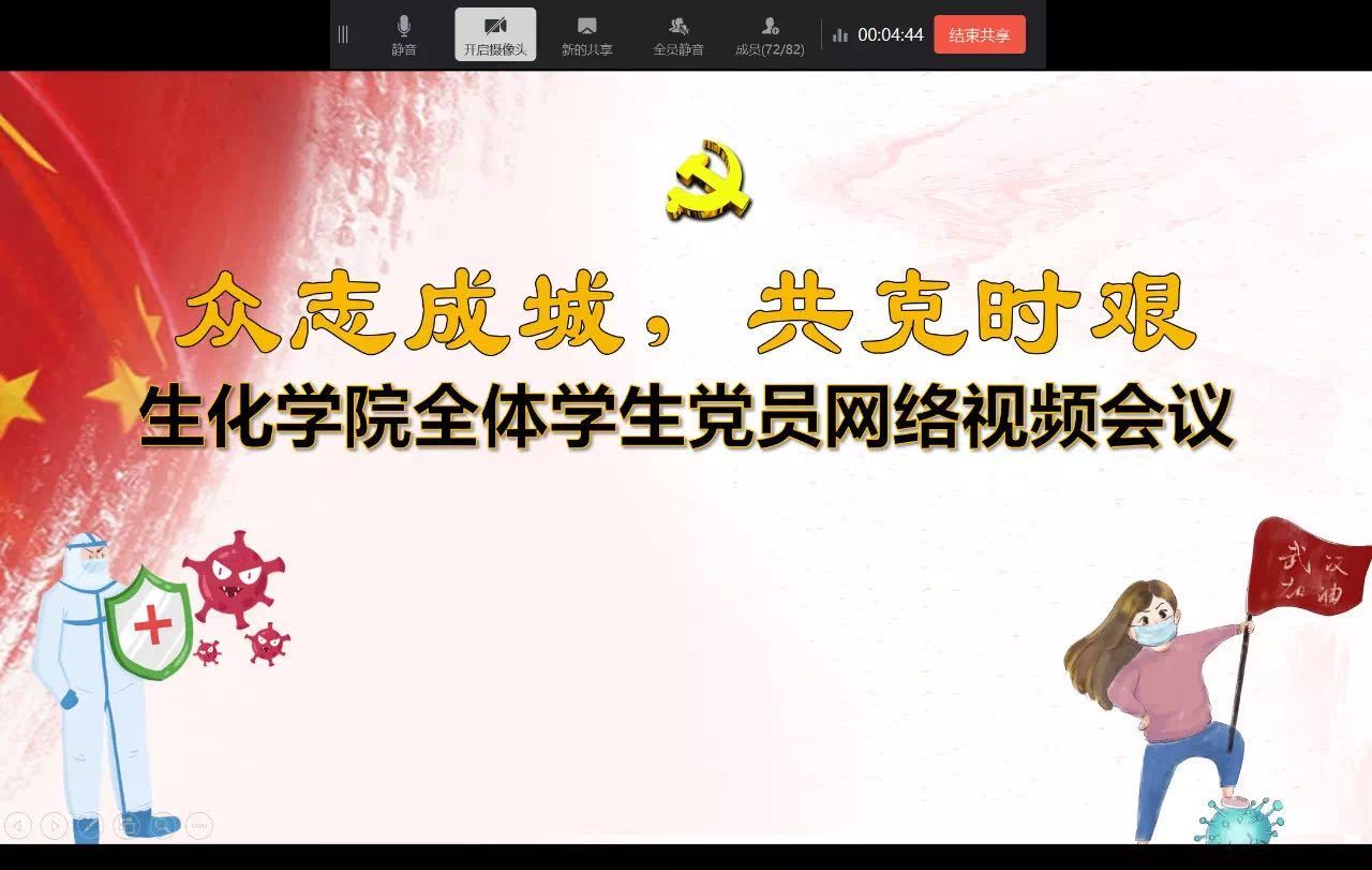 此外,开学第一周各班级以“抗击疫情”为主题纷纷开展了网络班会,各团支部开展“众志成城,生化战‘疫’”线上主题团日活动,共同吹响古天乐代言太阳集团138青年爱国战“疫”青春集结号。