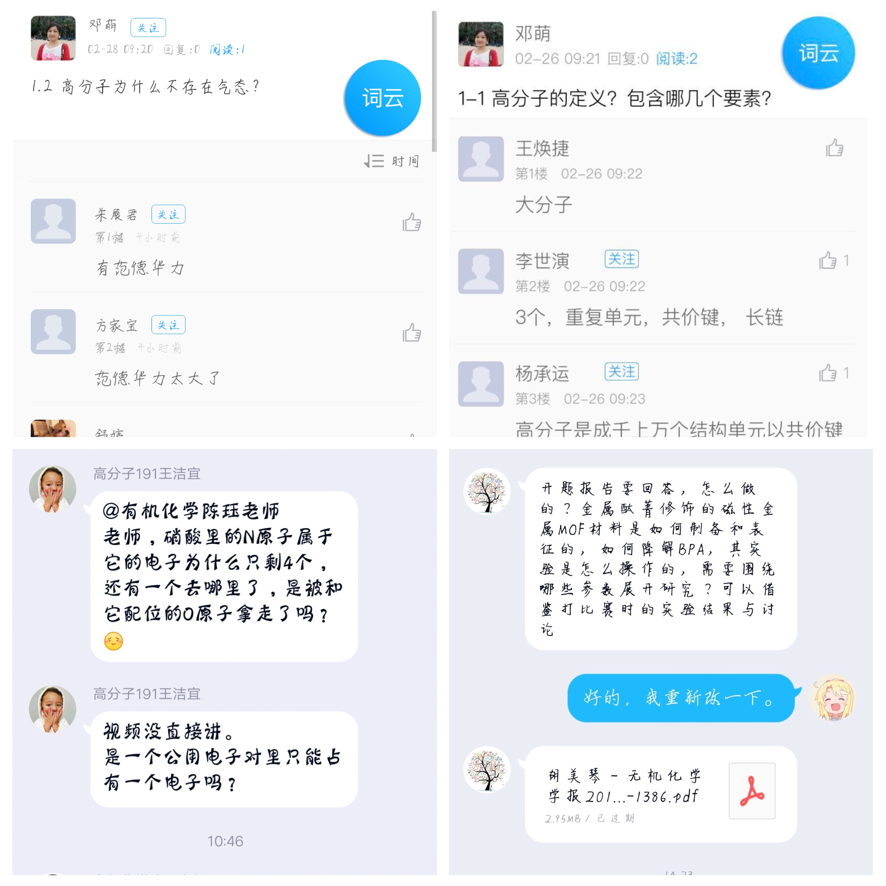 二胎妈妈代冬梅和陈佳这学期共同承担了包括《仪器分析》、《药剂学》、《药物分离技术》、《中药保健食品概论》多门课程,任务量大。宅家备课、线上讨论、多平台运行、录制网络课程每个环节两位老师都付出了大量的精力。新任妈妈冉诗雅承担《阻燃材料学》和《化妆品科学与护肤》两门课程的教学任务,每天都像上满发条一样,在紧张繁忙中度过。这些宝妈们的网课上得可一点也不含糊,课程讲解,习题解答,线上互动得到了同学们的纷纷点赞,工作养儿两不误,线上教学显身手。
