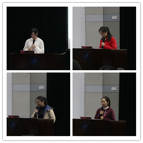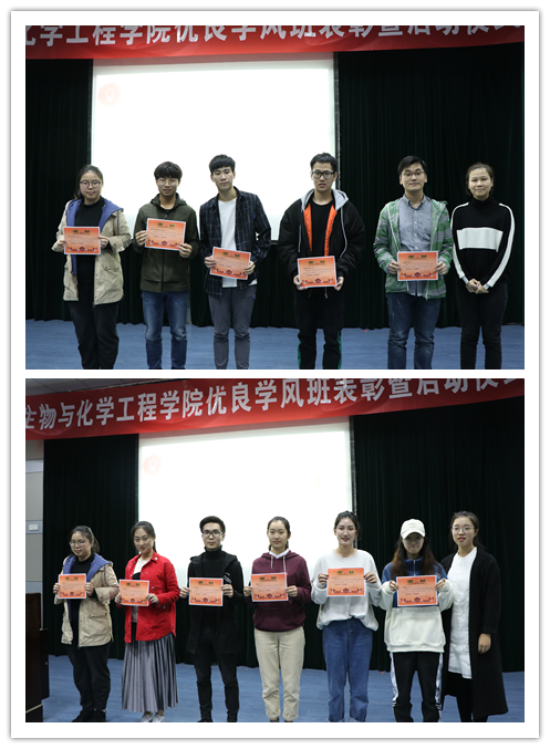 随后,张硕老师和闫雪茹老师为17-18学年优良学风创建工作中的先进班级和优秀学习委员颁奖并合影留念。之后学风建设部部长梁程芳汇报了上学年优良学风班评选过程,梳理了新学年创建的具体工作。接下来是由表彰班级代表进行了优良学风班风采展示,向同学们介绍了各班的创建成果和特色,传授了优良学风班创建工作中的经验。紧接着高分子181班的张新月作为新生代表上台发言,倡议新生班级积极参与新学年优良学风班创建,将这项工作从夯实基础,做出成效,推进同学们的全面发展。