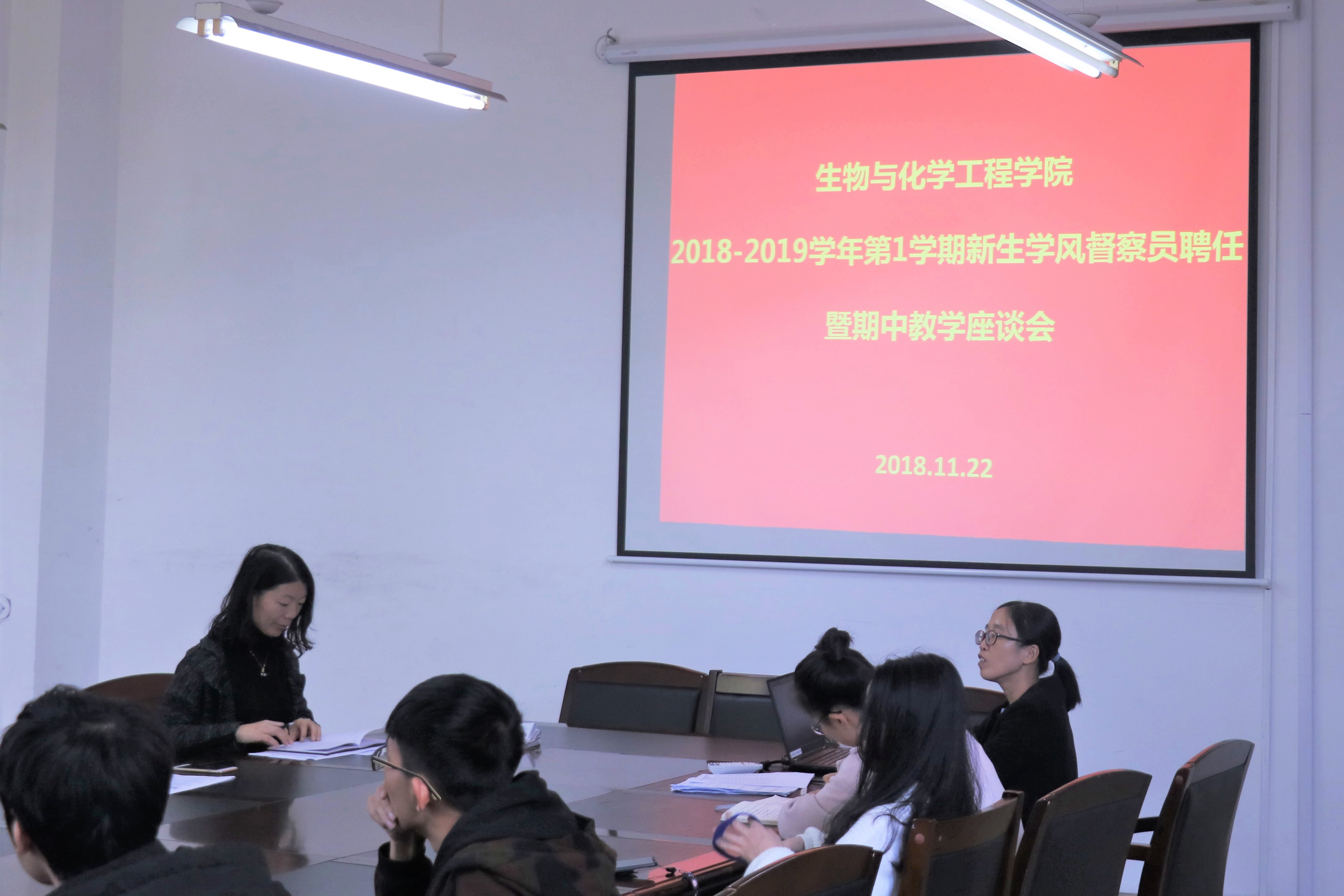 11月22日中午,古天乐代言太阳集团138在ND103会议室召开了2018级班级学风督察员聘任仪式暨期中教学检查座谈会,公司教学副经理尚龙安、党总支副书记楼文军,各研究所教学负责人、教务办及学工办老师参加。会议由尚龙安主持。