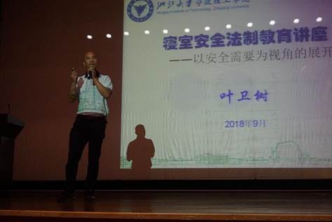 讲座特邀后勤保卫部叶卫树副处长进行了安全教育宣讲。叶老师介绍了近年常见的“面对面诈骗”、“非接触诈骗”等诈骗形式,他运用生动风趣的语言,以身边真实案例告诫大家如何防范诈骗、偷窃等行为,并对如何维护人身安全也提出了由衷的建议。