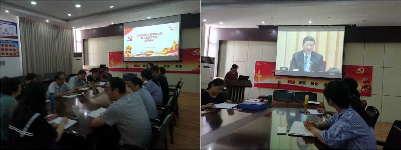 9月18日,生化教工第三党支部在NE209举行了新学期首次支部会议,学习习近平总书记在全国教育大会上的重要讲话,并讨论新学期支部工作部署。支部全体党员认真观看讲话视频,并进行了热烈讨论,发表了各自的深刻体会。