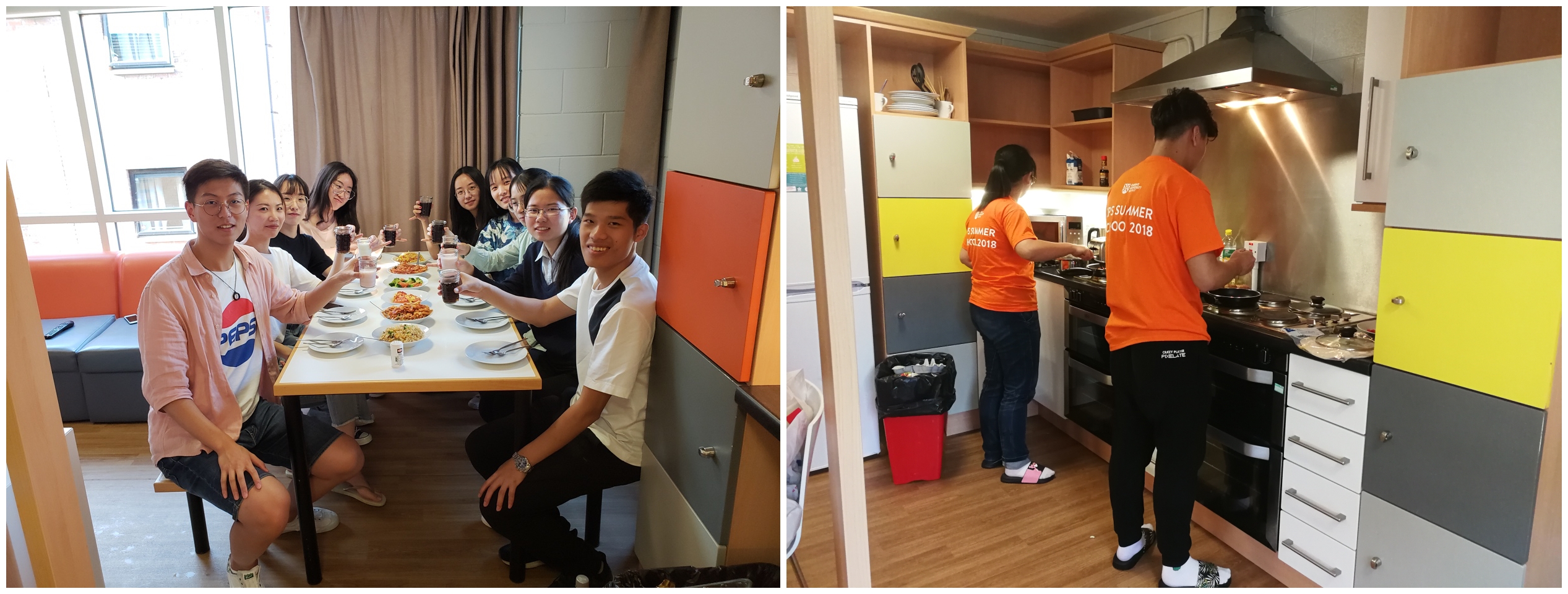 食:一个月的时间说长不长,说短也不短,在一个全新的国度生活这么久,吃饭是一件不得不解决的大事。英国人的午餐很简单,经常是便利店一个三明治就可以解决,当然肯德基、汉堡王和鱼条店等都是英国人最常光顾的地方。但是对于吃习惯了中国菜的我们来说,自己动手才能丰衣足食。每天下课后,我们会一起去当地的TESCO超市采购,然后在厨房一起做饭。