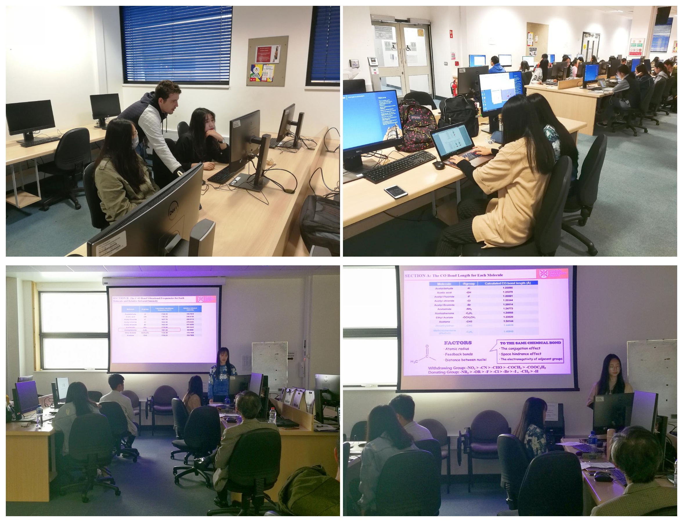 除了上课听讲,本次课程中还特别设计了需要自己上场展示的环节,要求在一天时间里组队学习并对学习成果做个学术报告,老师给我们每人发了一个小U盘,里面装着的程序——GaussianView,就是这次报告的主要工具。在老师们教会我们如何使用后,我们将要利用这个软件计算一系列羰基化合物的分子震动频率和其碳氧双键的键长。