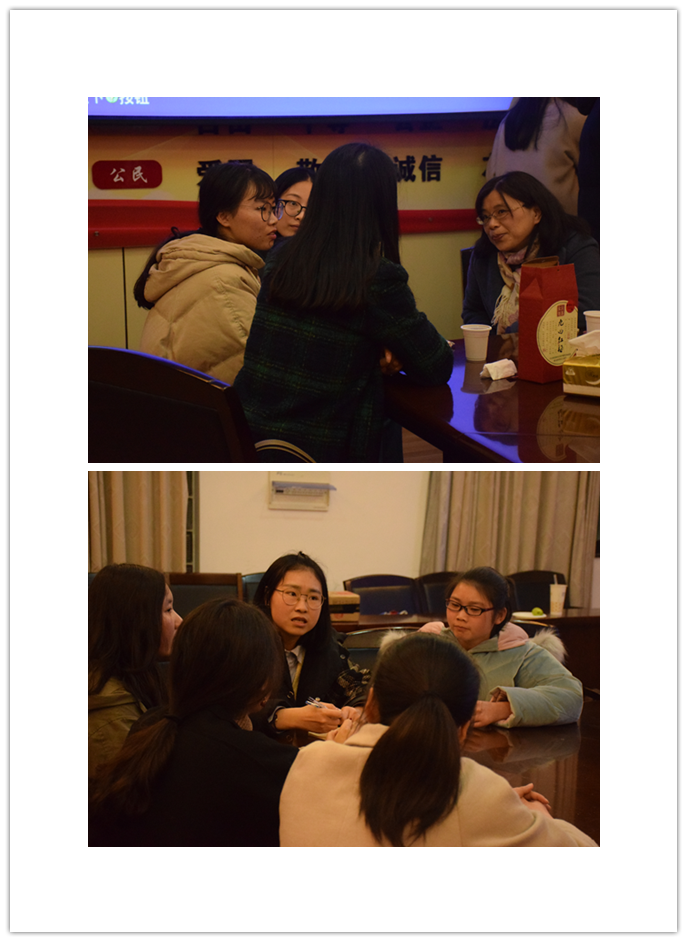 同学们就化工设计竞赛、平时的学习工作和生活、出国交流项目、就业前景、老员工涯规划等方面提出了诸多问题。老师和学长学姐们均做出了悉心解答。两位老师指出:在化工专业学习期间,参加竞赛有助于成长,竞赛过程中要有毅力,团结协作坚持到底,才会发现其实竞赛并不困难,得到的观察锻炼在做毕业设计等工作时都有很大的帮助。参加英国女王大学“3+1+1”项目并已成功申请到直博资格的何文豪同学和大家分享了国外的学习生活经历,他的阅历告诉我们,要培养自主学习思考的能力,同时对未来应当早作规划。郑雯静同学在大学期间有较多的社会工作经历,她教会我们“要让自己忙一些”,多寻找自己的兴趣所在,对于自己未来的工作生活来说,前三年的阅历和沉淀将会是很大一笔财富。陆培培同学结合自己多家公司的面试经历,给大家分享了一堂别开生面的“求职课”。