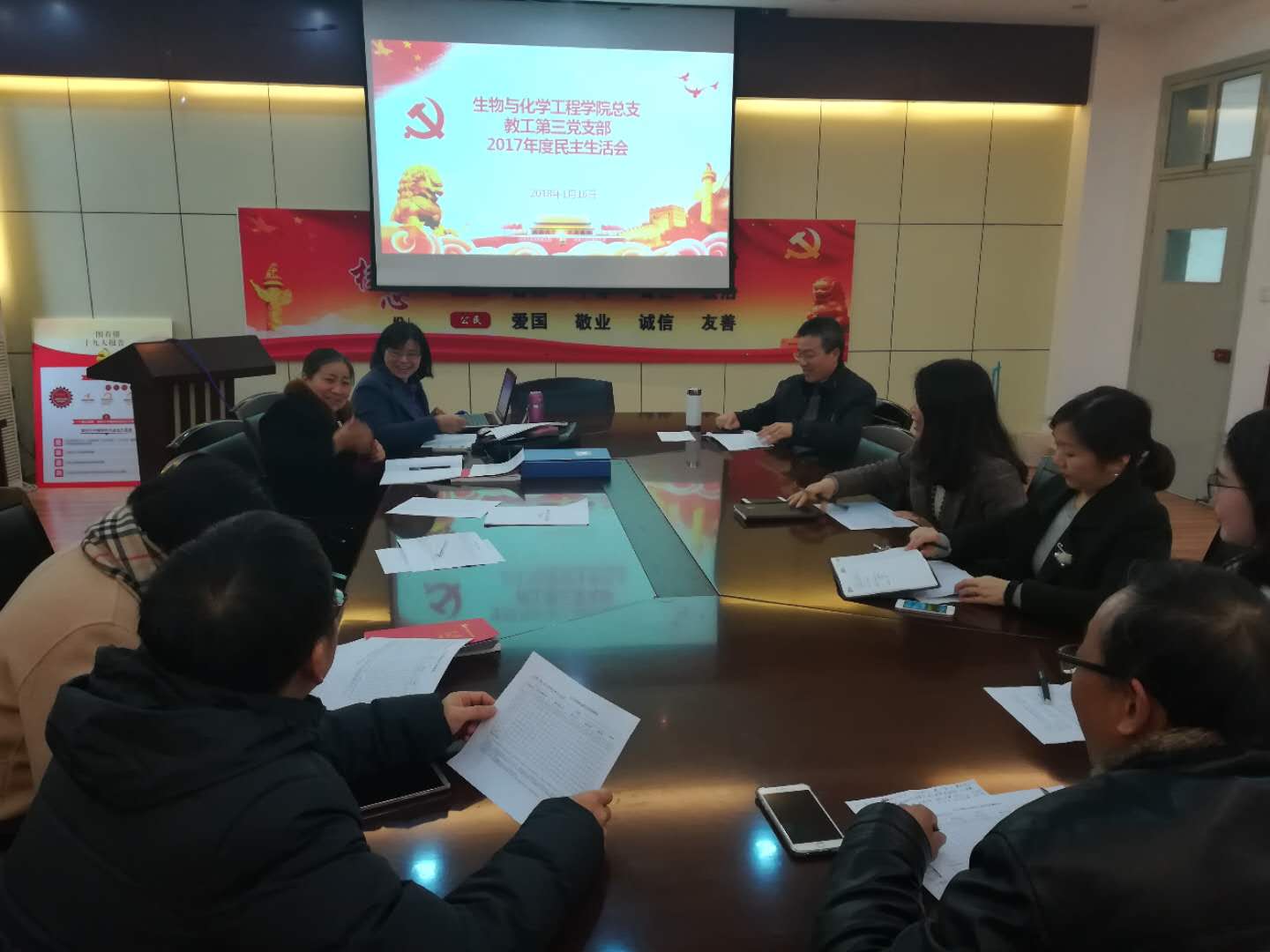 2018年1月16日下午,根据公司召开2017年度党支部组织生活会和开展民主评议党员工作的通知要求,古天乐代言太阳集团138教工第三党支部在公司“党员之家”召开2017年度组织生活会议。会议由支部书记沈昊宇主持,第三党支部全体党员出席。