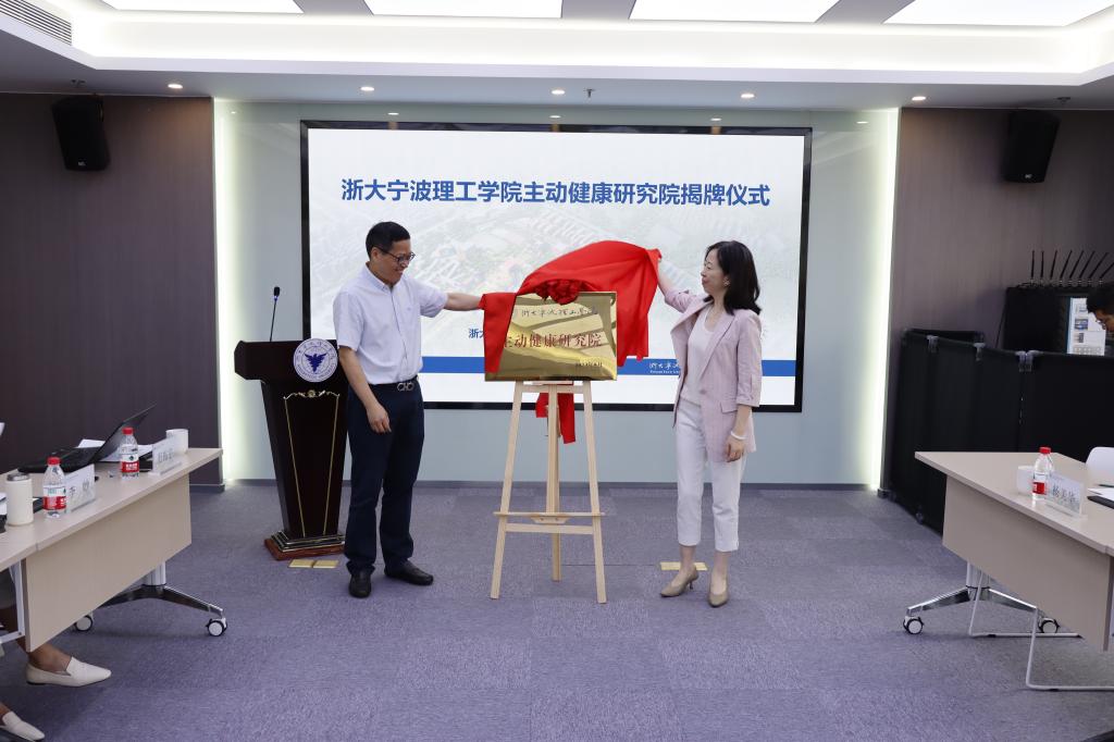 △宁波市卫健委副主任李湘虹、副董事长鲁东明共同为主动健康研究院揭牌