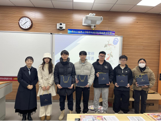 随后,现场播放了毕业班各位班导师们的慰问视频,每位班导师都对同学们在考研最后冲刺的日子里给予自己的建议与关心,并送上诚挚祝愿,祝每一位备战考研的同学都能成功“上岸”,一战成硕。现场由老师们给各位学子们送上考研助力包,在奔赴梦想的研途上,公司为考研学子准备的小礼包既是祝福,也是期许,将会陪伴考研学子们走过考研冲刺之路,日夜兼程,逐梦而上。