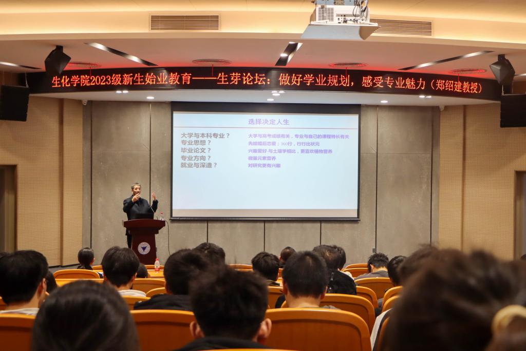 郑教授结合自身经验,从求学经历、研究历程及前沿探索三方面展开,为新生们详细介绍了专业的特点与前景,让新生们对所学专业有了更深入的了解。在了解专业的基础上,郑教授为新生们提供了制定有效学业规划的建议。