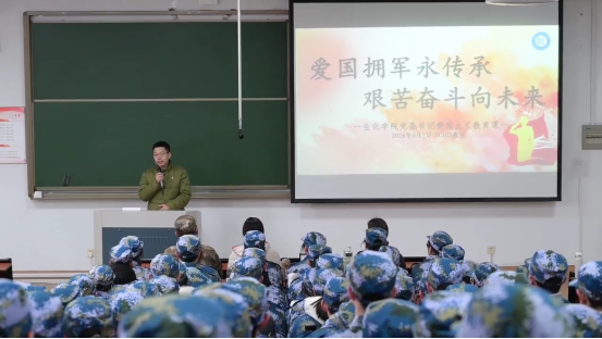 教育课由全体师生高声合唱国歌声开始,教育课上,刘哲书记指出爱国主义教育是党和国家在70 多年光辉历程中团结青年、引领青年、赢得青年的优良传统和政治优势,爱国拥军的思想更要从此刻的军训加强塑造,勉励同学们要胸怀报国之志,秉承“求是”传统,担当民族复兴大任,努力成长为有理想、敢担当、能吃苦、肯奋斗的新时代好青年。