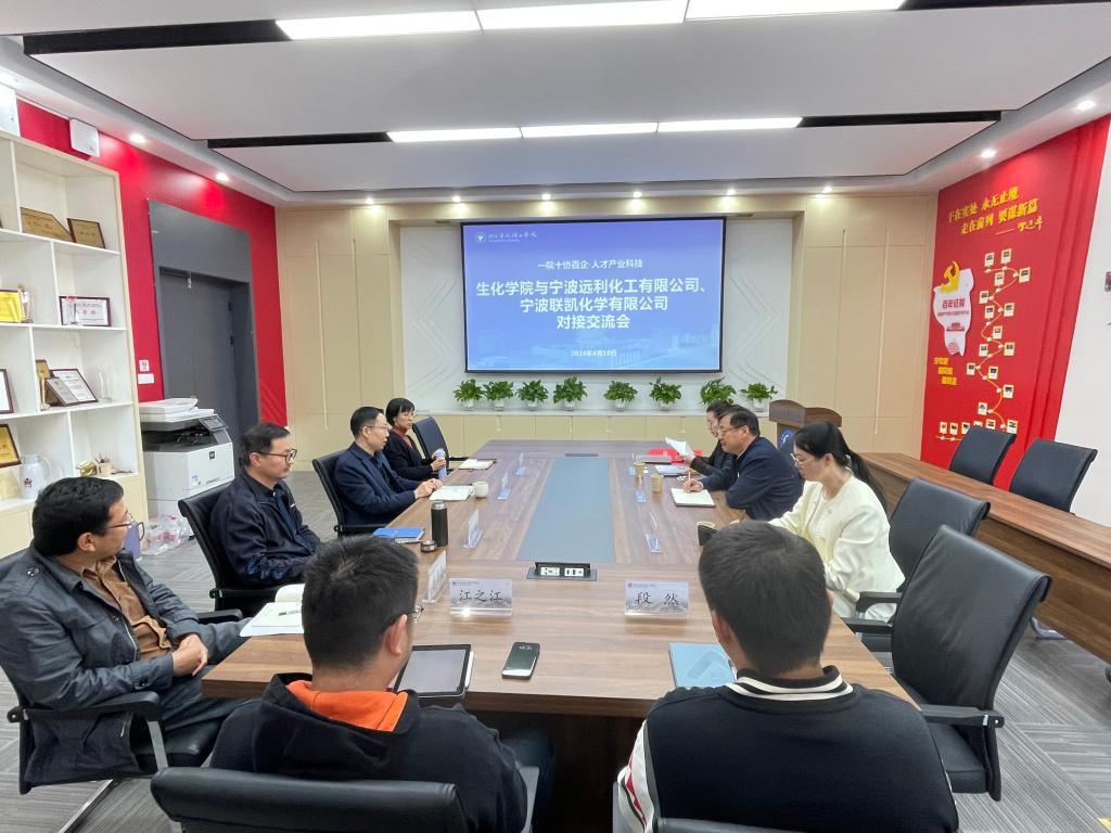 4月10日,公司举办第一期“一院十协百企”活动,邀请宁波远利化工有限公司总经理李红良、宁波联凯化学有限公司行政总监杨旭辉等来院交流。公司副经理王进波、张艳辉出席,公司相关研究方向教师代表、就业辅导员、科研秘书等参与座谈。