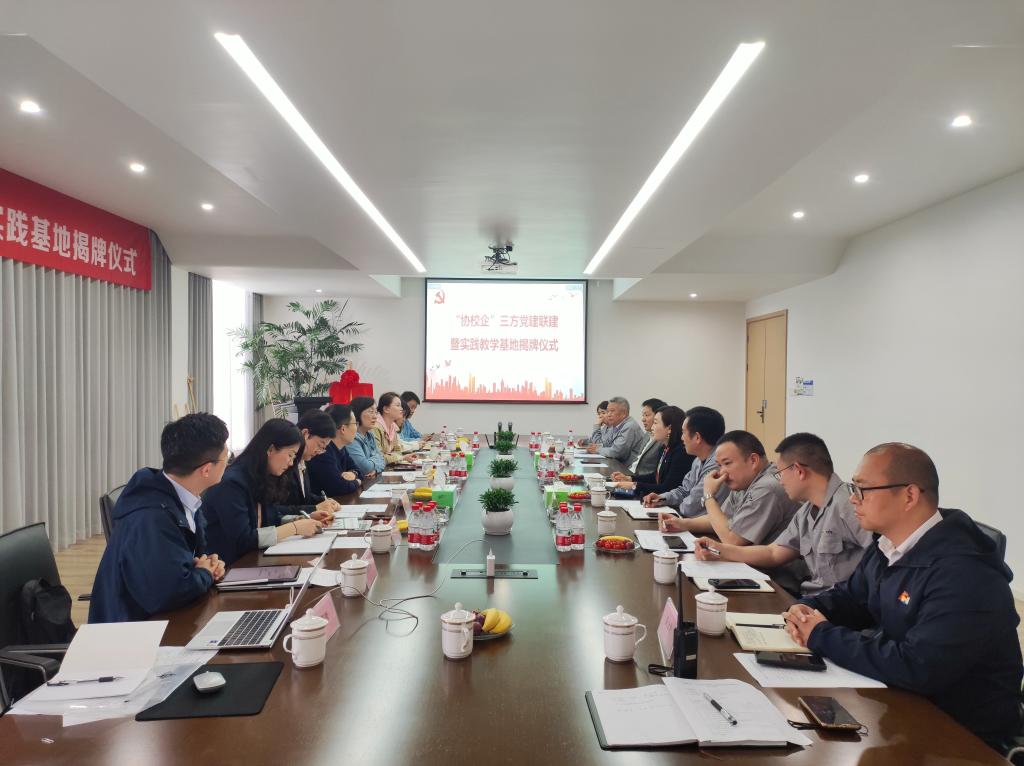 王进波、吴晓明、薛瑞宣和林巧共同为实践教学基地揭牌。王进波表示,此次党建联建开启了院企协合作的新模式,以党建为媒,希望能聚合院企协三方力量共谋更深层次合作;通过实践教育基地的建设,希望能实现人才培养、实习就业等方面的深度对接;通过此次活动,希望带动更多教师和企业互动,结出更丰硕果实。