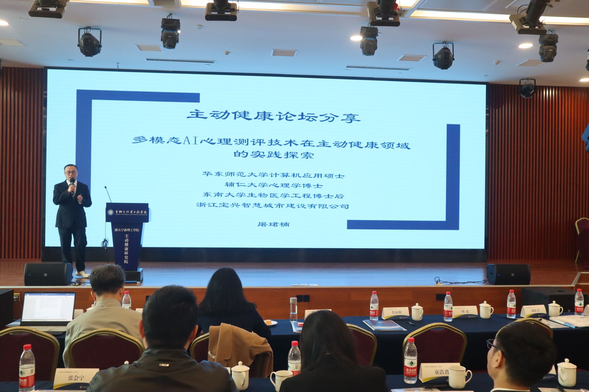 浙江宝兴智慧城市建设有限公司屠珺楠博士做了“多模态AI心理测评技术在主动健康领域的实践探索”主题分享。传统心理测评采用量表法,量表法只能反映自我评估时的心理状态,人群对于量表题项的理解程度不同,评估效果不客观,被试者存在隐藏、示好、回避和阻抗等问题,结果需要结合实际情况进行判断,往往需要专家参与。多模态AI心理测评系统利用图像识别、语音识别等技术,通过捕捉面部表情、语音语调等外显行为,实时分析并识别待检对象的情绪状态,可以较为客观地进行心理状态评测,为人群心理干预提供更为精准的判断依据。