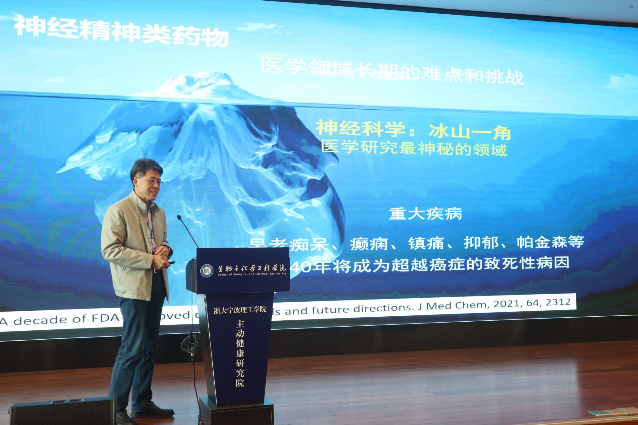 北京大学宁波海洋药物研究院高级科学家张文教授做了题为“海洋——神经活性物质的宝库”的主旨报告。海洋生物生活环境特殊,是人类重要的药物资源宝库。张文介绍了沙海葵毒素、河豚毒素、刺尾鱼毒素、芋螺毒素和褐藻酸钠等海洋来源的生物分子在神经系统疾病治疗中的巨大潜力。
