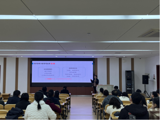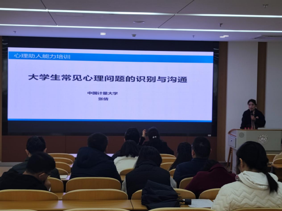 随后,公司邀请中国计量大学心理教师张倩为各位班导师做心理健康教育专题培训,张倩老师以《老员工常见心理问题的识别与沟通》为主题,通过多个案例分析,深入浅出,向班导师介绍了全员全方位全过程心理育人,讲授了做为班导师如何更好的与员工建立情感,如何识别心理异常员工、与重点员工、家长谈话注意事项等。