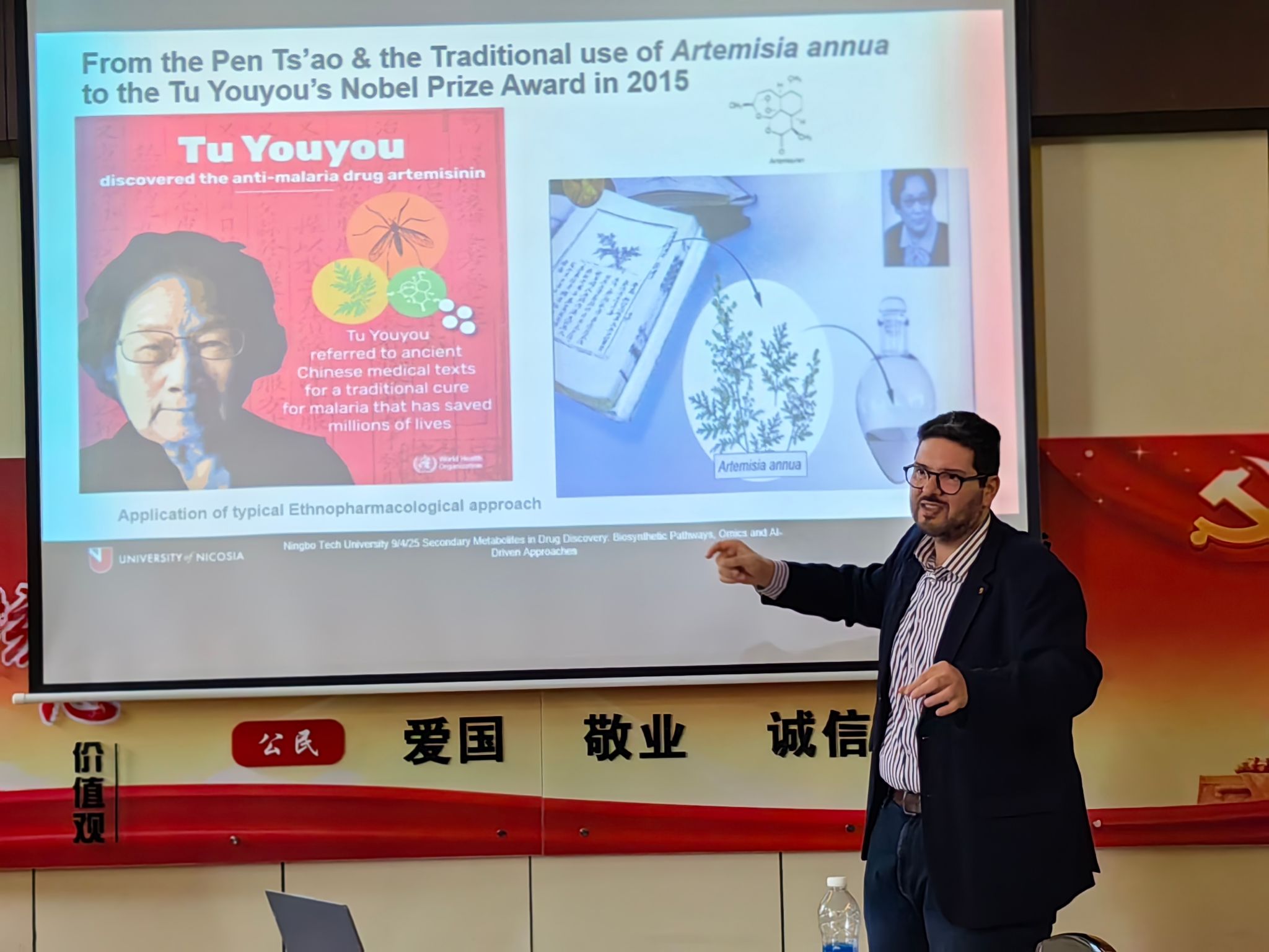Christos博士的报告从古希腊“自然疗法”到我国的《本草纲目》,系统回顾了天然药物的发展历史,特别提到了宁波籍药学家、诺贝尔奖获得者屠呦呦先生发现的青蒿素对人类健康的巨大贡献。在人工智能技术突飞猛进的时代,运用多组学虚拟筛选、靶点预测和生物分子设计与改造,可以大幅提高新药发现效率和开发成功率。
