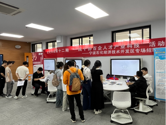 为抢抓春季招聘黄金期,促进毕业生与优质企业精准对接找到满意工作。经公司领导带队,早前于3月6日走访宁波石化经济技术开发区管委会开展访企拓岗活动,通过前期交流与努力,4月10日公司举办第十二期“一院十协百企人才产业科技”活动,暨石化区专场招聘会。本次招聘会共有10家石化行业知名企业参与,包括宁波大风江宁新材料科技有限公司、宁波福德能源有限公司等,提供生产、研发、管理等岗位100余个,覆盖化学工程与工艺、生物工程、材料工程等多个专业。
