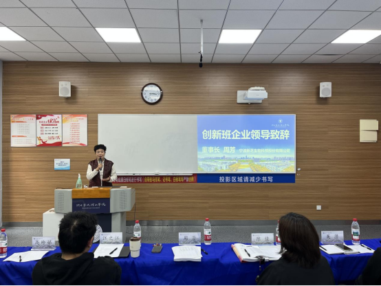 活动最后,新芝生物董事长周芳上台致辞,她对本期创新班学员们的努力和成果给予充分肯定,对本期创新成果给予高度评价,并勉励道:"创新是企业和个人发展的不竭动力,希望同学们继续保持求知探索的热情,将创新思维融入未来的学习和工作中,为推动行业和社会进步贡献力量。"