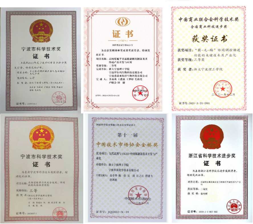 近五年,获浙江省科技成果奖2项、中国发明协会创新成果奖等社会力量奖7项、宁波市科技成果奖5项;主持各类科技项目250多项,总经费到款超过1亿元,其中,与企业合作的技术攻关类项目超100项,经费达4200余万元;实现技术成果转化20余项,转化经费超过1000万元。