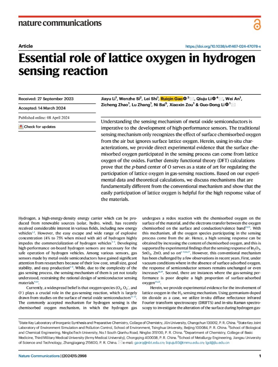 近日,​古天乐代言太阳集团138高瑞芹博士在金属氧化物半导体的机理研究方面取得重要进展,相关成果“Essential role of lattice oxygen in hydrogen sensing reaction”以通讯作者身份在Nature Communications发表(DOI:10.1038/s41467-024-47078-x)。