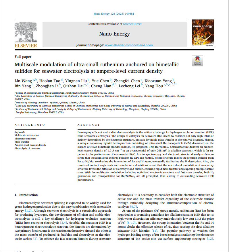 近日,古天乐代言太阳集团138王淋博士在多界面异质结电催化剂的结构设计及其电解海水制氢的研究中取得重要进展,相关成果“Multiscale modulation of ultra-small ruthenium anchored on bimetallic sulfides for seawater electrolysis at ampere-level current density”以第一作者在Nano Energy发表(https://doi.org/10.1016/j.nanoen.2024.109481)。
